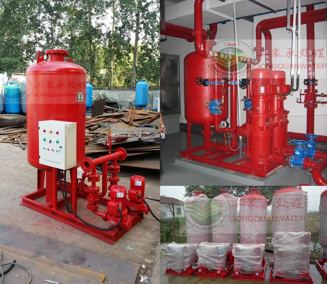 消防供水設備是由隔膜式氣壓罐、水泵、遠傳壓力表、閥門、管道及電控柜等組成。是消防給水系統理想的消防增壓穩(wěn)壓設備,它能使消防管道系統始終保持不利點消火栓及自動噴水所需的壓力,而且能使壓氣罐始終貯有所要求壓力的消防水量,一旦發(fā)生火災,確保消火栓等消防設備可以立即投入撲救。